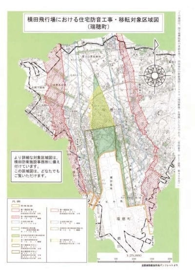 対象区域は、横田防衛事務所で確認できます。また、区域の概略であれば、瑞穂町役場秘書広報課でも確認できます。